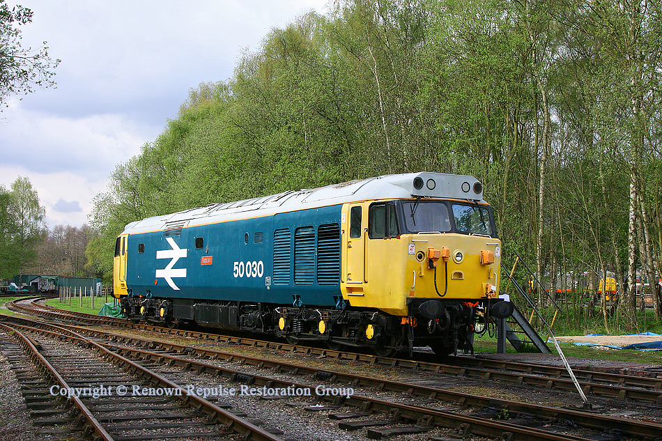 D430 1968. Jun - To D05 - Stoke Division 1973. May - To CE/CD - Crewe Diesel 50030 1974. Mar - Renumber 1974. May - To BR - Bristol Bath Rd 1976. Dec - To LA - Laira 1980. Jul - To OC - Old Oak Common 1989. May - To LA - Laira 1992. Apr - Withdrawn 1995. Jan - Sold to operation Collingwood 1995. Apr - Moved to Allied Steel & Wire at Cardiff for storage 1997. Jan - To Pontypool & Blaenavon Railway for restoration 2002. Jul - Sold to Renown Repulse Restoration Group 2002. Sep - Moved to Peak Rail, Rowsley for restoration 2024. Sep - Restoration ongoing |